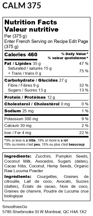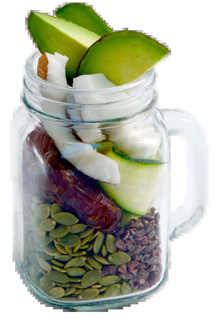 Ingredients: Zucchini, Avocado, Pumpkin Seeds, Dates, Organic Cacao Nibs, Organic Coconut Milk, Organic Coconut, Hemp Protein Powder, Organic Lucuma